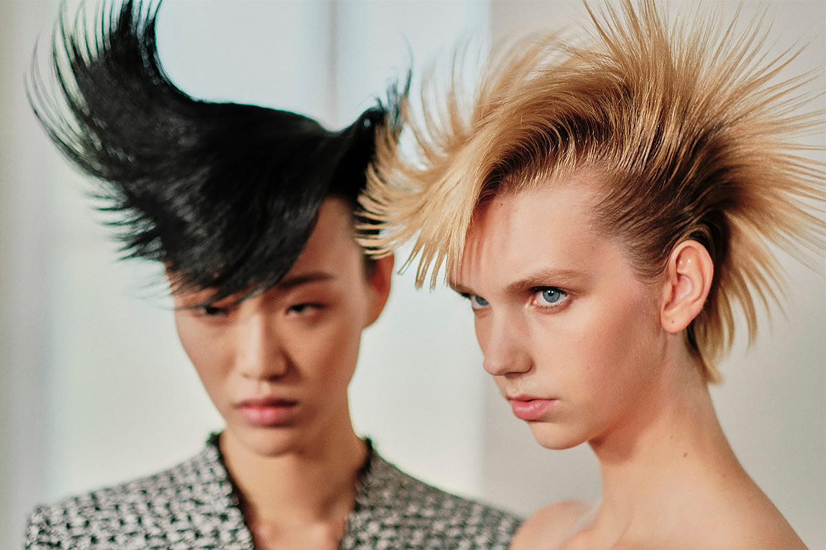 Прически моделей показа Givenchy Haute Couture AW19 условно можно разделить на две категории: аристократичные пучки и эксцентричные панк-укладки, напоминающие «скульптурную птицеподобную форму». Таким образом, Гвидо в своей философской манере показал общество женщин, одни из которых олицетворяют сдержанность и покорность, другие дерзость и свободу. Естественно, «дерзких и свободных» укладок на подиуме было гораздо меньше, чем «сдержанных и покорных» – все как в жизни.