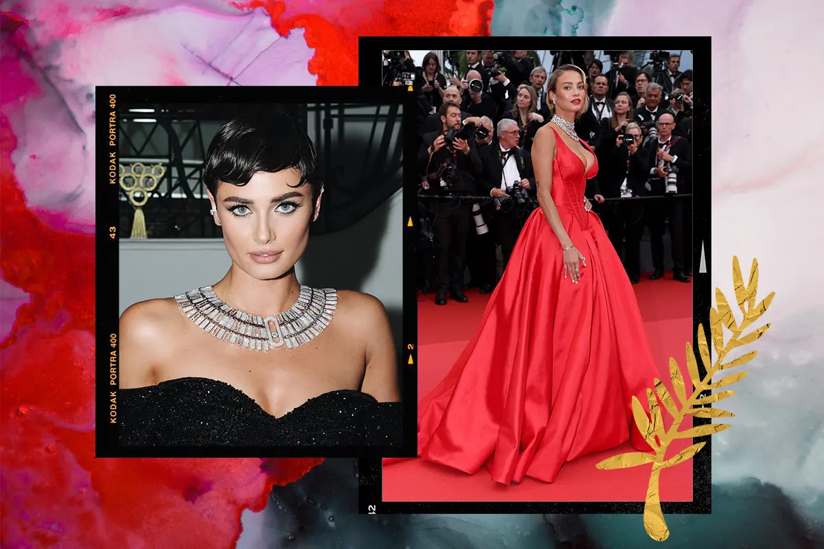 На красной дорожке Канн Тейлор появилась в идеальном комбо – силуэтном черно-белом платье Balmain и ювелирных украшениях Messika. Модель также продемонстрировала свою модную стрижку, вьющуюся пикси, которой очень подходил эффект мокрых волос и ретро-локоны, обрамляющие лицо. Дымчатые смоки-айз с классической черной стрелкой и нюдовая помада завершили роскошный аутфит. Детали образа Хилл показала в своем Instagram.