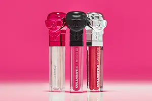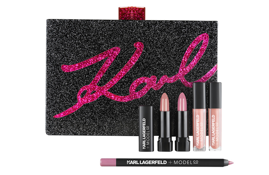 В линейке ModelCo x Karl Lagerfeld будет 50 продуктов. Тема коллекции – «сияющая красота», а значит, скромных матовых продуктов мы в ней не увидим. Бальзамы для губ, глянцевые карандаши, бронзаторы, сияющие палитры теней, блески для губ – все это можно будет найти в коллекции Карла.