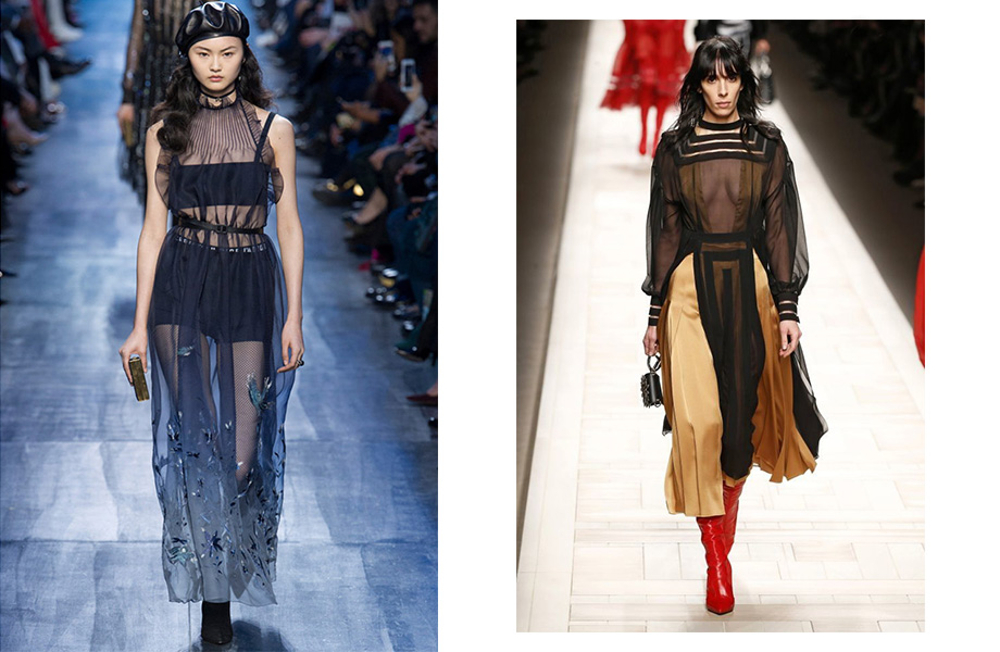 В новом сезоне ода женственности и романтизму приобрела настоящий дух свободы и бунтарский облик в виде платьев из прозрачных тканей с геометрическим рисунком. Здесь дизайнеры разделились на два лагеря: некоторые посчитали, что вещь такого рода сама по себе очень самодостаточна, поэтому умело дополнили её лишь минималистичной обувью, другие подыграли массивными аксессуарами и стилизованными патчами – в каком настроении встречать эту весну? Выбор за вами!