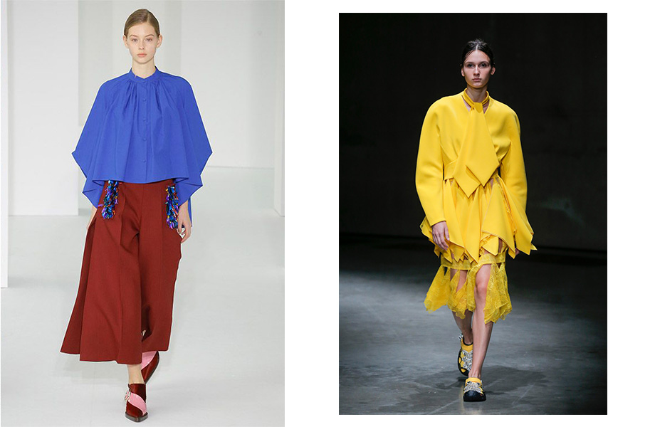 Цвет – чистый и прекрасный, полюбите его и вспомните свои детские рисунки: самые смелые сочетания красного и зеленого, розового и оранжевого раскрасят серость будней и поднимут настроение не только вам, но и окружающим вокруг. Присмотритесь к одежде четкого архитектурного кроя, именно она максимально выгодно подчеркнет всю игру цветов.