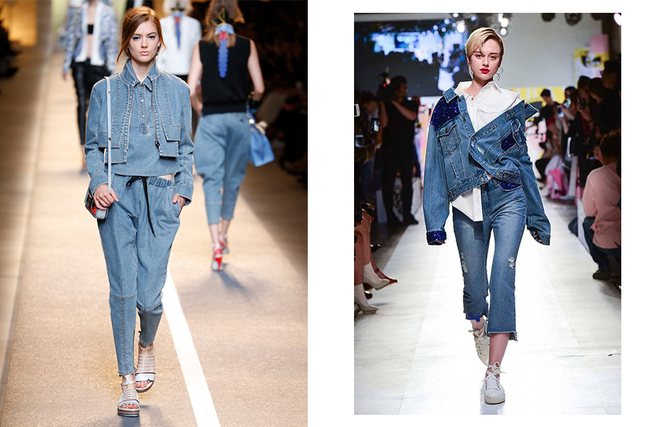 Яркие 80-е вновь не отпускают модные подиумы: на сей раз под прицелом вареный деним. Многие дизайнеры отдали предпочтение в пользу приема total color, используя при этом классический темно-синий цвет, но встречается и креативное исполнение в оригинальных неоновых расцветках. Свою особую изюминку такого рода варке придают ретрофасоны на современный лад: накладные карманы и интерпретация уже известных нам mom jeans, отрезные жилеты и куртки-бомберы.