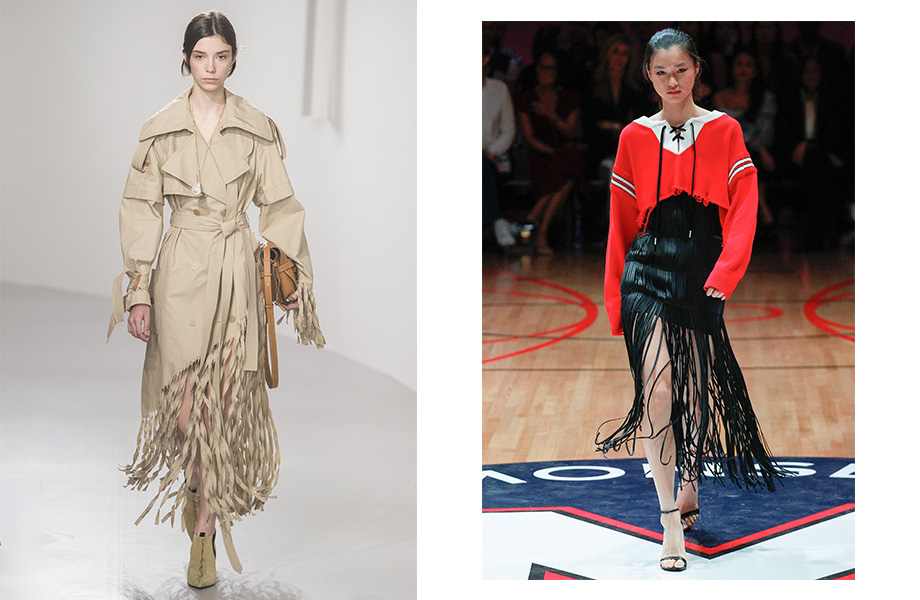 Богемные атрибуты стиля арт-деко, которые когда-то украшали платья лучших модниц 20-х годов, ворвались в новый сезон в своем новом амплуа. Если раньше такого рода декор служил просто как одно из дополнений, составляющих образ, то на сей раз дизайнеры действовали по принципу «чем больше, тем лучше», придавая особое праздничное настроение даже самым повседневным вещам – настоящим откровением стали платья-свитшоты из коллекции Monse и тренч от Loewe.