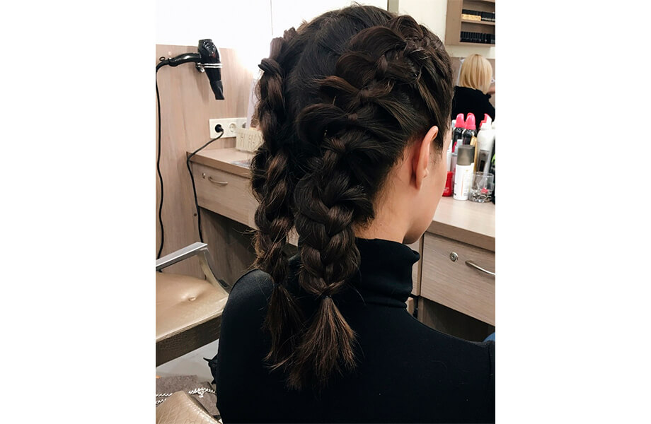 Я захотела два параллельных «колоска». Важно, что волосы в салоне расчесывают с помощью Tangle Teezer, а значит, не будет боли и вырванных волосков. За несколько минут девушка создала на моей голове именно то, что было изображено на фото, которое я выбрала. Во время плетения со мной оговорили длину «хвостиков» и ширину косы. Положившись на мнение мастера, я не ошиблась. Она пригладила выбившиеся волоски и закрепила результат лаком. Весь процесс занял у мастера 10 минут и стоил мне 90 гривен.