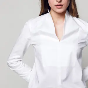 С новым витком моды на андрогинность, более того – на гендерную амбивалентность, строгая рубашка под смокинг становится как никогда логичной в женском гардеробе. Бренд Nuances, к примеру, адаптируется к городским условиям и оставляет лишь намек на классический крой: вшитую манишку, ворот-стойку, высокие манжеты, четкую посадку в плечах. Узкий глубокий вырез напоминает о манере див «Студии 54» в сочетании со смокингом игнорировать рубашку вовсе. А нам, в свою очередь, дает возможность насовсем отказаться от нарядных «двоек», не отказываясь от эксперимента.