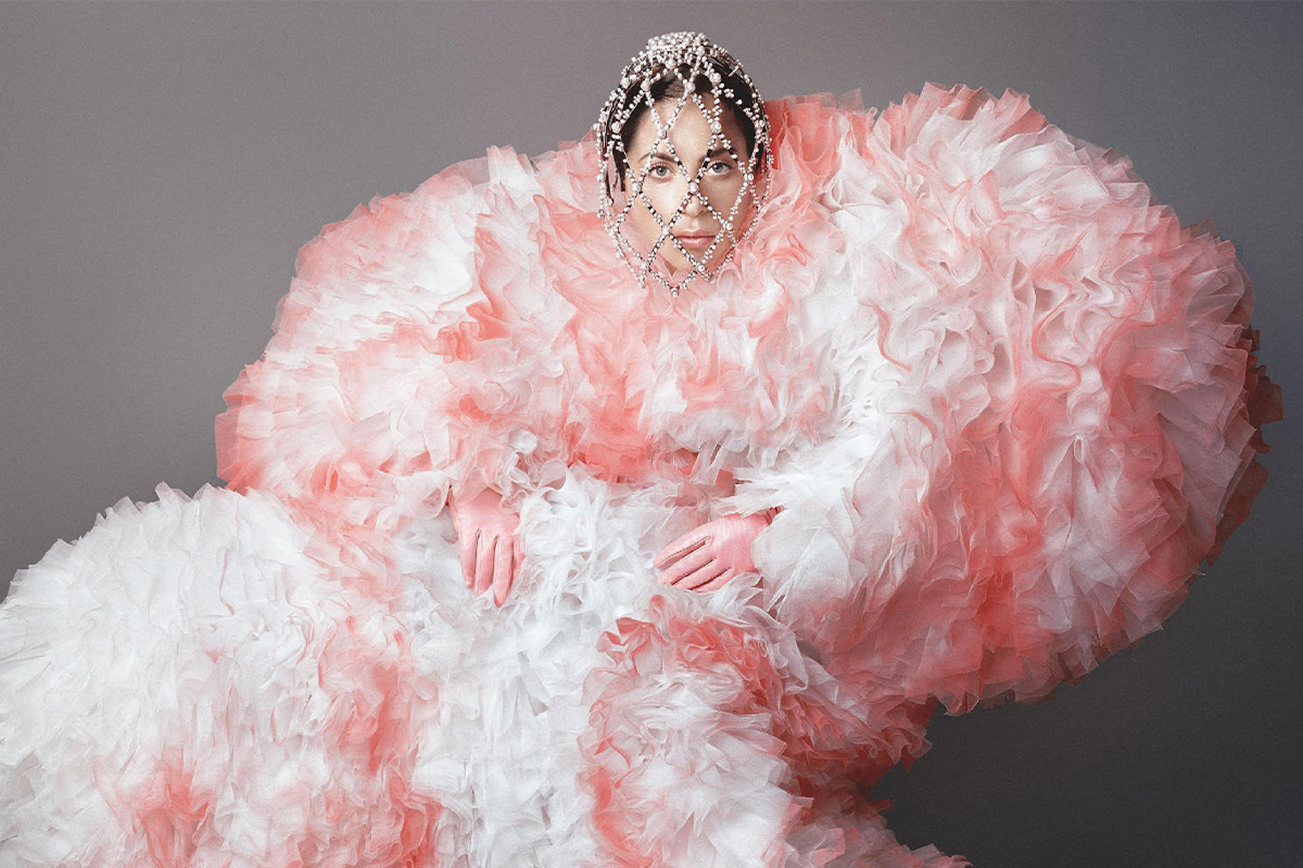 Для обложки британского Vogue Леди Гага предстала в эффектном и ярком образе. Эдвард Эннинфул, главный редактор издания, стилизовал съемку с помощью нарядов итальянского бренда Schiaparelli, а фото сделал легендарный Стивен Мейзел, с которым звезда всегда мечтала поработать. Синие волосы, лиловые тени на веках и кораллово-красная помада на губах в сочетании с черным платьем с «крыльями» из металлизированной тафты – сплошной взрыв.
