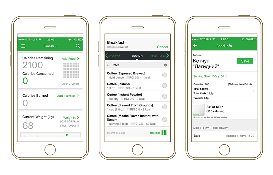 Многие девушки уделяют подсчету калорий массу времени, вручную записывая каждый съеденный кусочек, высчитывая соотношения белков, жиров и углеводов (БЖУ). Приложение FatSecret сильно упрощает задачу, позволяя сделать запись в пару кликов, а обширная база продуктов выдаст результат, в котором БЖУ уже учтены. Символическая иконка подсказывает, что твой секретик останется только между тобой и приложением. Программа умеет сканировать штрих-коды, правда, далеко не все украинские продукты внесены в ее базу.