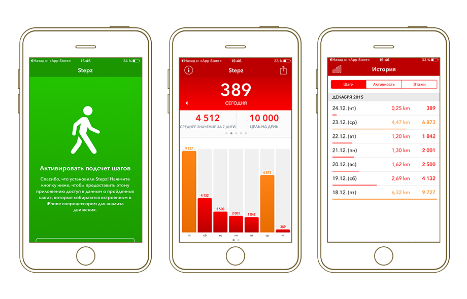 Сейчас доступны десятки фитнес-трекеров, подсчитывающих шаги, но с этой функцией может справиться и смартфон. Установив приложение Stepz (или его аналог Noom для Android-девайсов), можно отслеживать свою дневную активность, ставить цели и следить за их достижениями, а также изучать статистику интенсивности нагрузок. Программа работает в фоновом режиме, не «садит» аккумулятор, при этом точно подсчитывает преодоленное расстояние и уровень суточной активности. Полученные результаты демонстрируются в виде графиков и цифр: за час, за день, в километрах или милях.