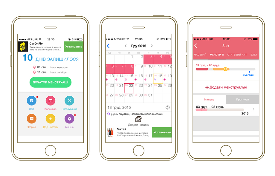 Еще десять лет тому девушки использовали обычные календарики для отслеживания своего цикла. На сегодняшний день существует масса приложений, не только «зачеркивающих» каждый день, но и вычисляющих дату следующего цикла, «зеленые дни», оптимальный период для зачатия. В нем можно вести дневник сексуальной жизни, приема таблеток, записывать симптомы и перепады настроения. При консультации у гинеколога эта информация может быть полезной.