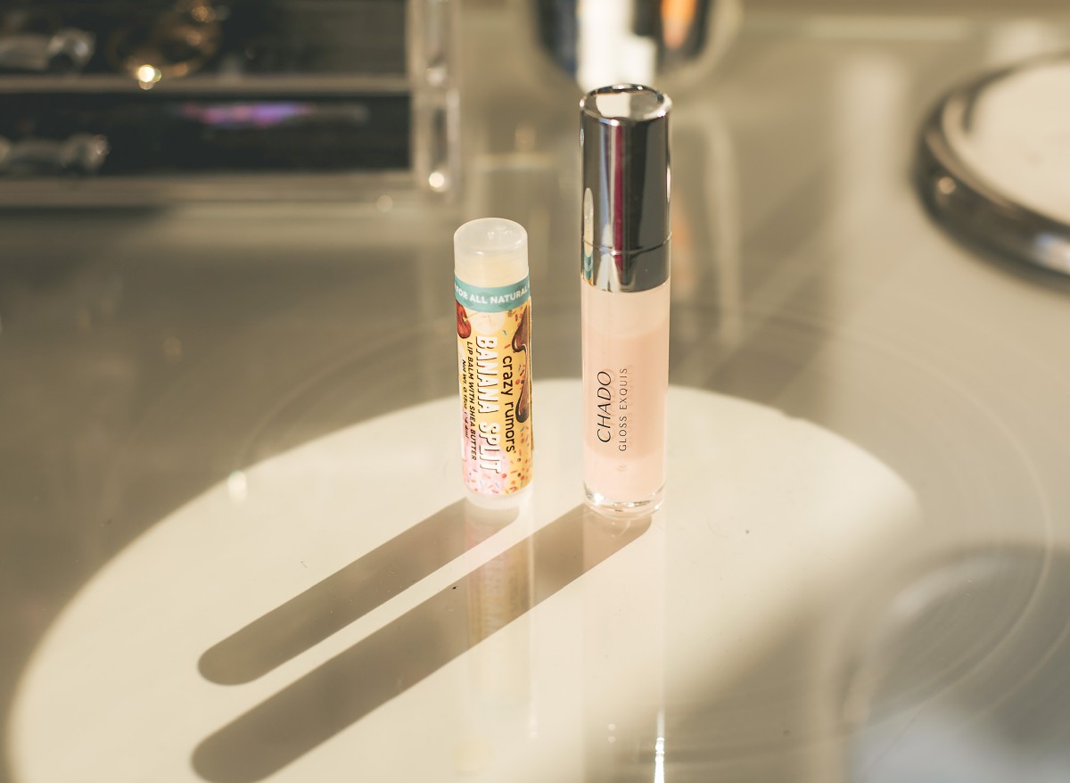 Мои губы защищает ароматный банановый бальзам и ухаживающий блеск Chado. А для ежедневной гигиены использую органический безопасный дезодорант Sasco deodorant.