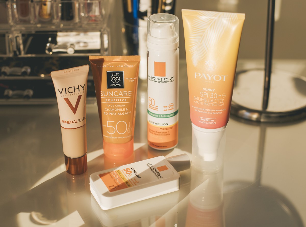 Летом в качестве дополнительной защиты обязательно наношу солнцезащитные кремы, у меня их много. Поскольку продукты с spf немного сушат кожу, не пропускаю нанесение дневного крема. Без макияжа использую кремы, а на макияж наношу любимый невесомый спрей La Roche-Posay. Для лета очень подходит новый увлажняющий тональный флюид от Vichy – Mineral Blend, у него в составе 70% термальной воды, гиалуроновая кислота и минеральные пигменты. Такая себе минеральная пудра в виде крема. Он очень хорошо увлажняет и дарит шелковистое покрытие, ровный тон – мне очень нравится.