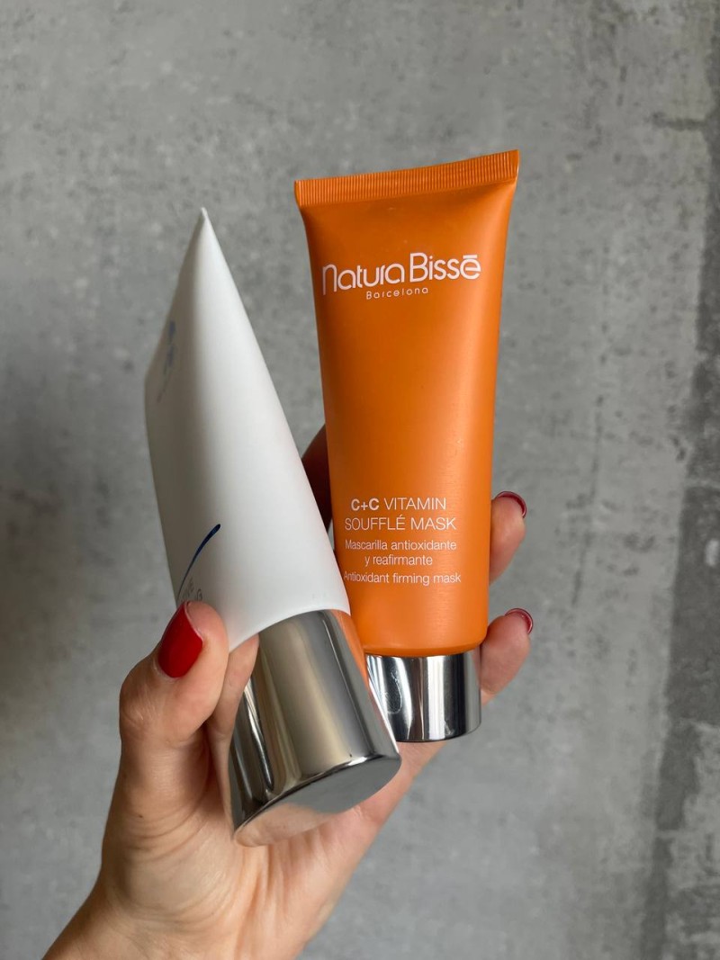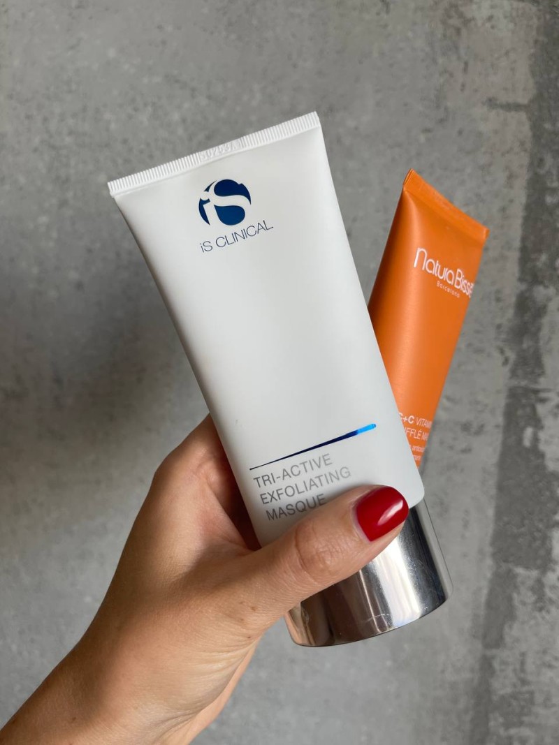 Энзимная маска с кислотами iS Clinical Tri-Active Exfolianting Masque отлично работает с высыпаниями, а антиоксидантная маска-суфле Natura Bisse с витамином С выравнивает тон кожи.