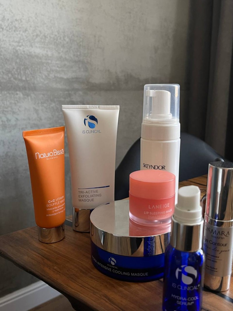 Из особых секретов – я обожаю маски! И нашла для себя любимцев, которые заменяют мне поход к косметологу. Увлажняющая Hydra-Intensive Cooling Masque от iS Clinical сразу после нанесения охлаждает кожу, что очень практично летом, а эффект не менее замечательный – успокаивает и уменьшает покраснения.