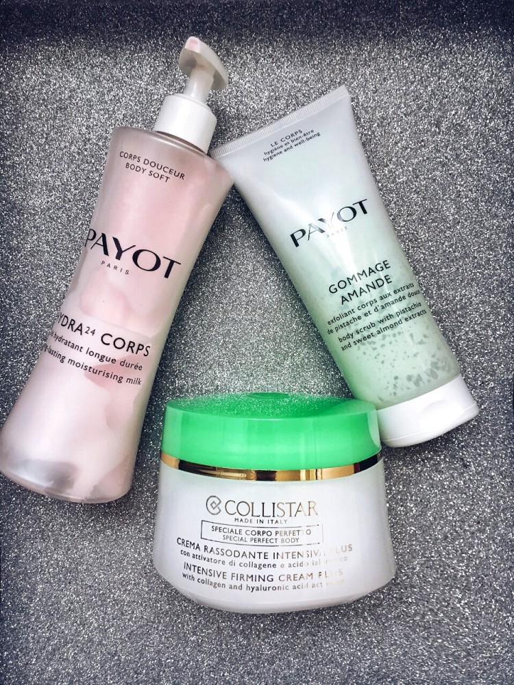 В арсенале по уходу за кожей тела у меня всегда имеется скраб с экстрактами фисташки и сладкого миндаля от Payot. Приятным бонусом станет запах, его хочется съесть :)) Для увлажнения кожи тела я обожаю обновленный крем от Collistar интенсивного действия. Intensive Firming Cream Plus улучшает эластичность и тонус кожи. Также использую увлажняющее молочко для тела от Payot. Я обожаю баловать себя ванной с большим количеством морской соли. А также раз в две недели обязательно делаю ручной массаж и обертывание. Эти ритуалы шикарно выводит лишнюю жидкость из организма, тонизируют кожу и улучшают общее самочувствие.