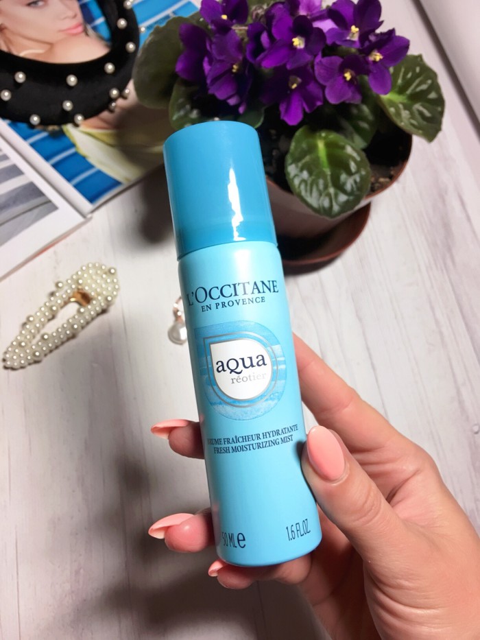 Термальная вода. Она у меня всегда стоит на туалетном столике. Есть пару брендов, которыми я пользуюсь. И на данный момент у меня, кстати, она заканчивается, а это – показатель. Стоит термальная вода от французского бренда L`Occitane. Термальная вода особенно хороша в летнее время. Это особый источник увлажнения кожи, и в составе воды есть кальций из прованского минерального источника, который находится во Франции. Кальций укрепляет кожный барьер и поддерживает естественный баланс кожи. Отличное средство на каждый день!