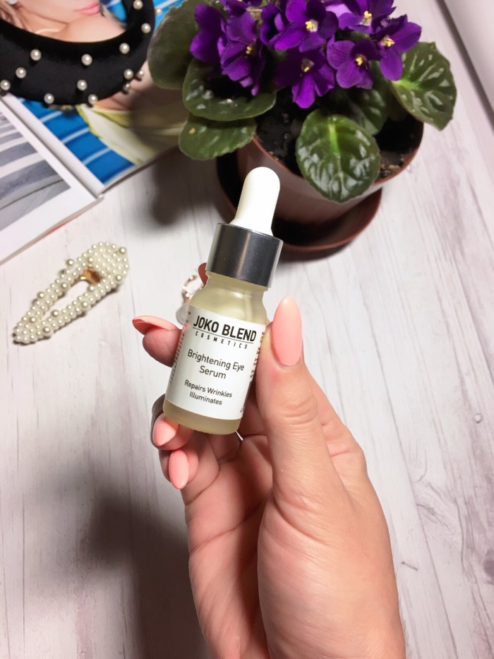 Средство для кожи вокруг глаз. У меня их два. Расскажу об одном из них и это вновь украинский бренд Joko Blend. Это сыворотка для кожи вокруг глаз, она моментально впитывается и очень круто увлажняет кожу вокруг глаз. Пользуюсь месяц и очень довольна результатом.
