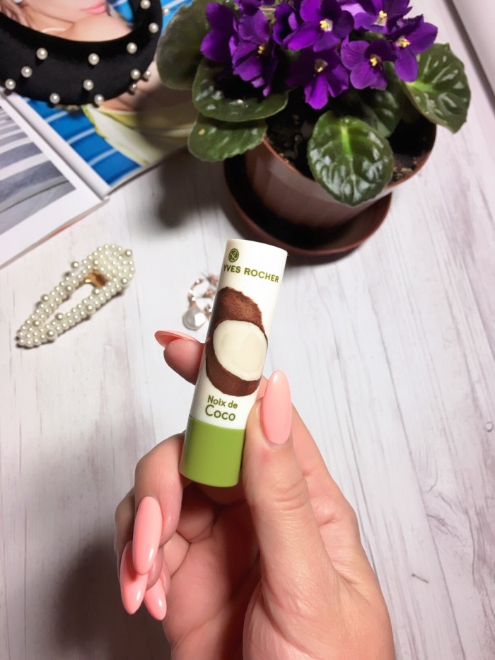 И последний продукт, о котором я хочу рассказать – это мой самый любимый бальзам для губ от французского бренда Yves Rocher. Пользуюсь я уже им пару лет, всегда ношу с собой, чтобы был под рукой. Всегда покупаю именно с кокосом, хоть в линейке представлены и другие варианты. Прекрасный бальзам, отлично питает губы, после обветривания за пару дней приводит губы в порядок. Быстро впитывается, аромат вкусный, кокосовый. И самое главное – его надолго хватает, хоть я им пользуюсь каждый день. Просто он –лучший.