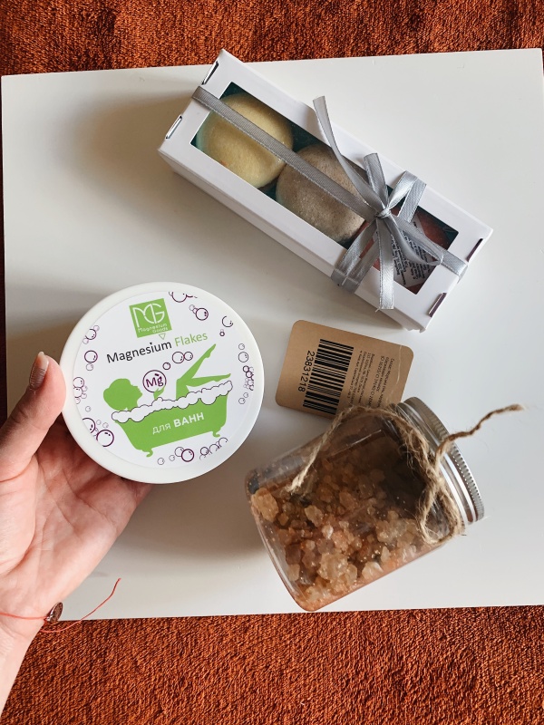 Люблю скрабы и различные бомбочки для ванн. Одна из моих любимых – это «Юпитер» от бренда Dushka. Не так давно открыла для себя магниевые хлопья для ванн от Magnesium goods. Они питают организм полезными веществами, через кожу.