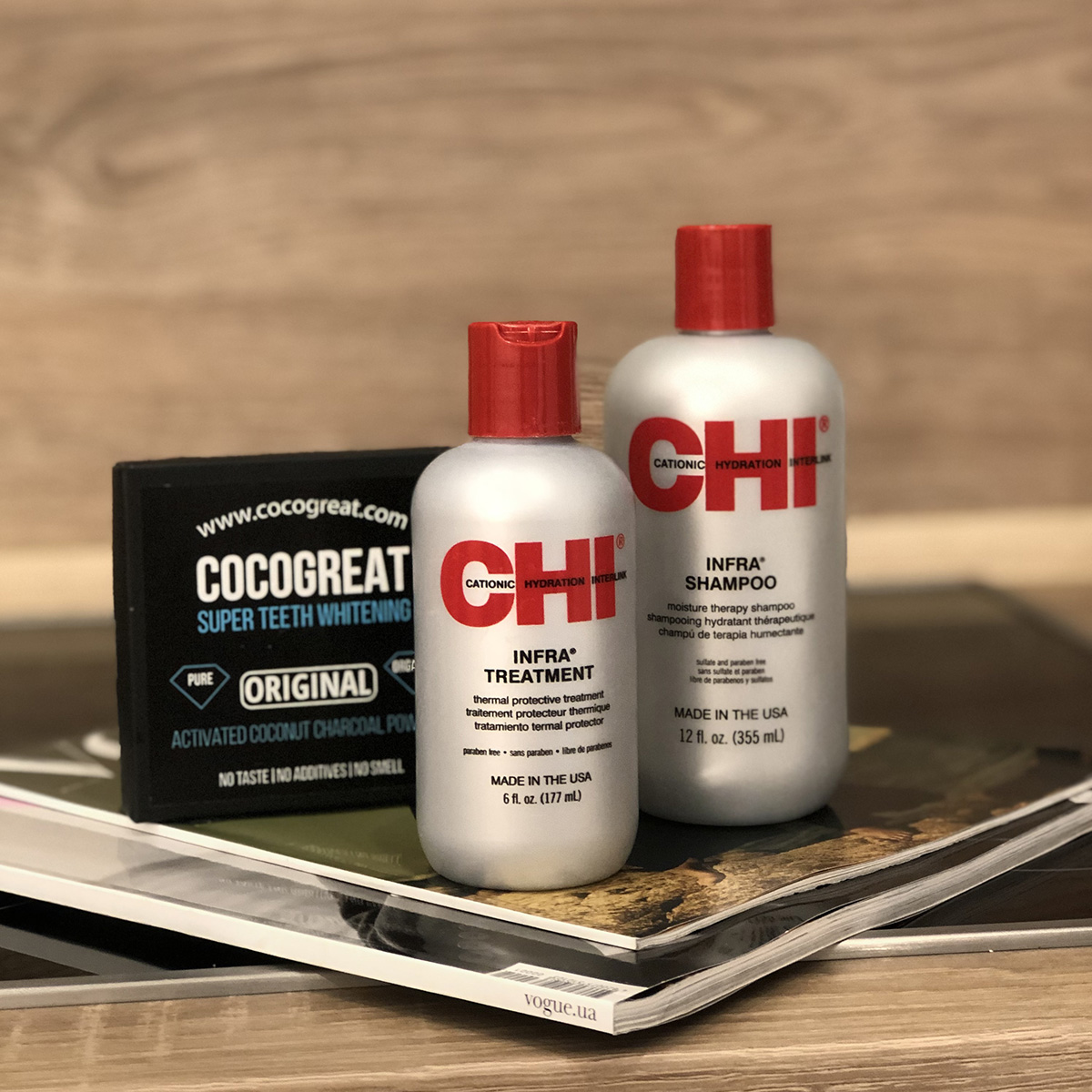 Косметика для волос CHI. Термозащита – важное качество, которое отличает эти средства от большинства. У меня светлые, неокрашенные волосы, поэтому защищать естественный цвет приходится ежедневно. Кокосовый уголь для зубов CocoGreat, я думаю, многие видели этот продукт в социальных сетях. Попробовала и не могу расстаться. Если у вас чувствительность к лазерному и химическому отбеливанию – зто хорошая альтернатива.