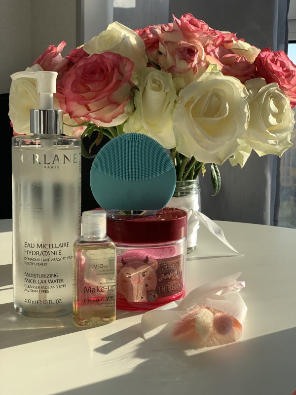 Очень важно качественно очищать кожу после спорта, чтобы не появлялось лишних «недоброжелателей» на ней. Поэтому после тренировки я очищаю лицо щеточкой Foreo и мицеллярной водой Orlane Paris. Я также использую винные диски от VONAS или гидрофильное масло и ubtan от m2organic.
