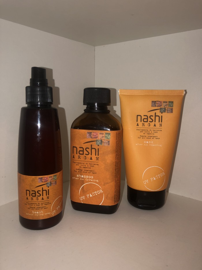 Любимые средства это: Caviar Anti-aging Color Hold Serum от Alterna, уход Phase 3 Olaplex и корейское масло Daeng Gi Meo Ri. Мой личный бьюти-арсенал в летнее время с учетом защиты от ультрафиолета таков: Nashi Aragan UV factor, использую все средства из этой линейки.