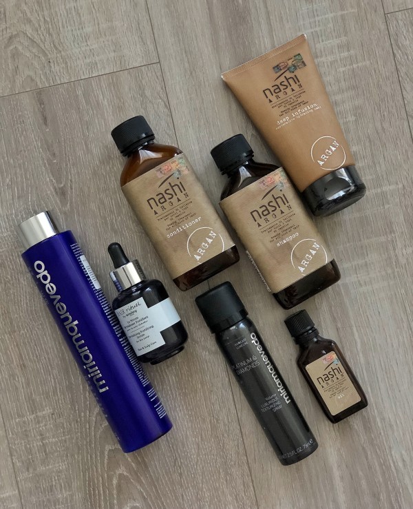 У меня толстый пористый и сухой волос, потому увлажнение в виде продуктов, насыщенных аргановым маслом от Nashi Argan – мое спасение. У меня шампунь, бальзам, маска, масло. Довольна ними очень. Сыворотка Hair rituel от Sisley творит чудеса с кожей головы. Она убирает сухость, открывает поры, что позволяет волосам более активно расти и насыщает полезными микроэлементами. Продукты от бренда Miriam Quevedo также причастны к уходу за моими волосами. Я иногда балуюсь их шампунем для окрашенных волос с экстрактом черной икры Extreme Caviar, а для фиксации укладки использую их спрей.