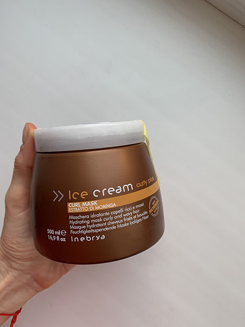 В уходе за волосами придерживаюсь принципа: чем меньше, тем лучше. Стараюсь не нагружать их уходовыми средствами, мою голову раз в два–три дня. Бренды шампуней и масок меняю достаточно часто, сейчас у меня период увлечения Inebrya для вьющихся волос. Их маска хорошо подчеркивает завиток. В качестве средства для укладки кудрей наношу немного крема от Kerastase, линия Aura Botanica. Лайфхак: прежде чем наносить маску после использования шампуня, промокните волосы полотенцем. И в идеале походите с маской минут 15–30, надев на голову шапочку для душа. Так волосы лучше напитаются.