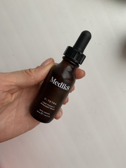 После очищения наношу свой стандартный набор уходовых средств, который не меняю уже годами: сначала пару капель витамина С или ретинол от Medik8 (зимой), летом – увлажняющую эссенцию от них же. Затем – крем под глаза от DNK и Betagen (этого же бренда). С первыми лучами солнца к этим продуктам добавляется ещё санскрин. С моей белой кожей, склонной к веснушкам, без санскрина никуда!