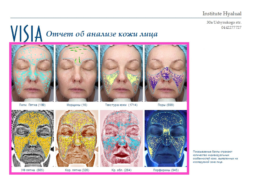 Перед началом редермализации кожи лица, шеи и зоны декольте модель (в нашем случае мама главного редактора) прошла ряд аппаратных исследований в клинике Hyalual, которые показали уровень влажности поверхности кожи с помощью Corneometr и анализ изменений в дерме, сделанный аппаратом Visia. Стоит отметить, что после каждой процедуры модель проходила исследования для доказательной базы эффективности процедуры редермализации.