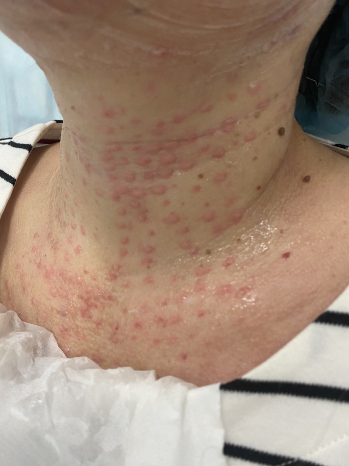 Для зоны шеи и декольте продолжаем использовать препарат Hyalual Booster, который показал отличные результаты по увлажненности, эластичности и тургору кожи и снова делаем перерыв между процедурами в три недели”.