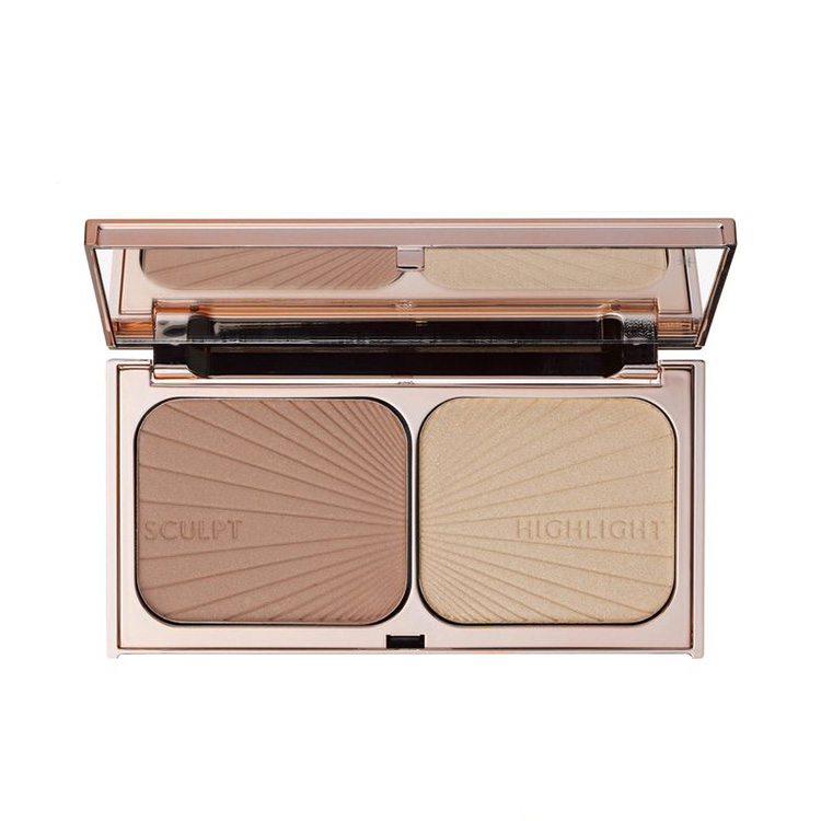 Лив не делает жесткого контуринга — на ее светлой коже он будет выглядеть слишком вульгарно. Вместо этого она создает эффект загара на скулах с помощью пудры-бронзера из палетки Charlotte Tilbury Filmstar Bronze & Glow Contour Duo (68$). Хайлайтер из этой палетки она наносит на выпуклые зоны лица — так оно будет казаться визуально более худым.
