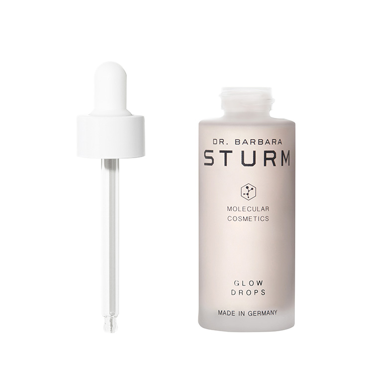 Да, да, кожа Лив все еще не готова к нанесению тона, поэтому ей нужно использовать базу. Ей нравится сияющие капли Dr. Barbara Sturm Glow Drops (135$).