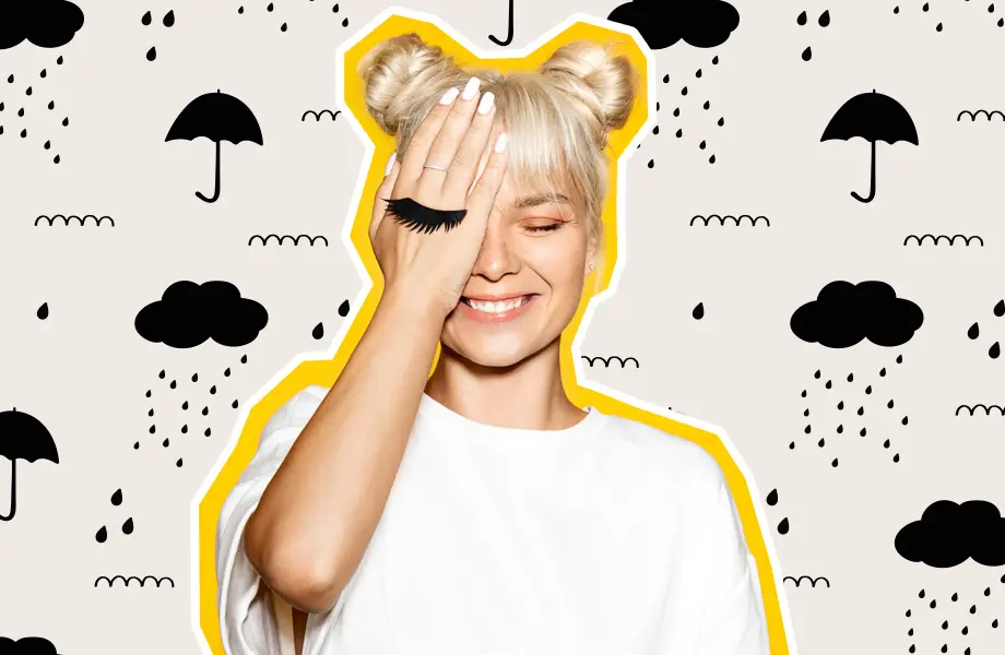 Если ты видишь, что погода не обещает ясный день, лучше воздержаться от сложного мэйкапа с градиентом теней для век и стрелок. Одного-двух слоев (желательно водостойкой) туши для ресниц будет вполне достаточно.
