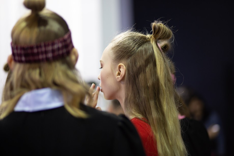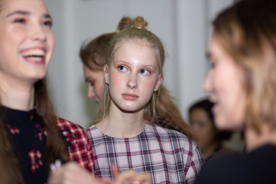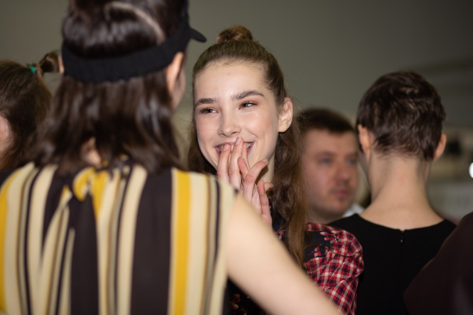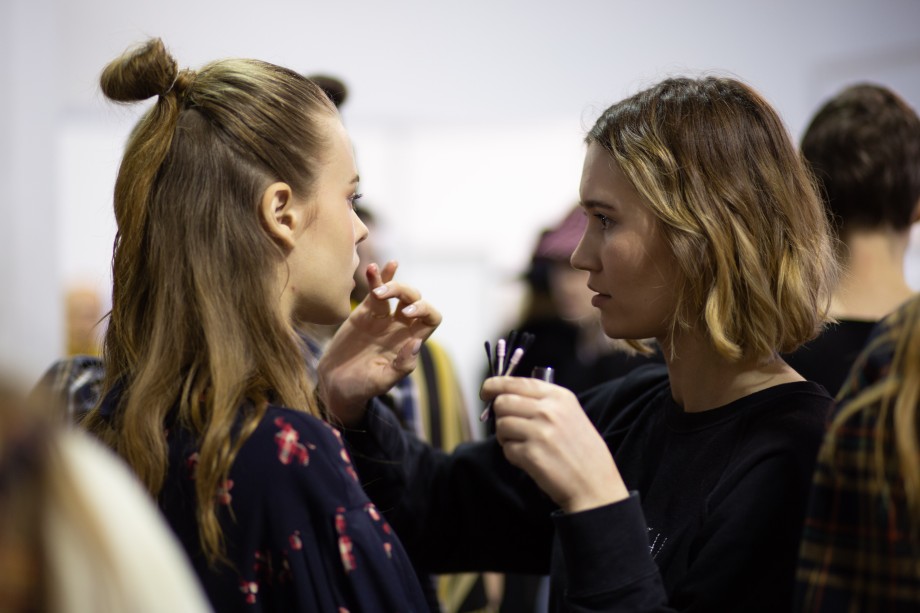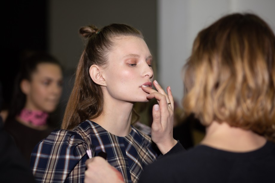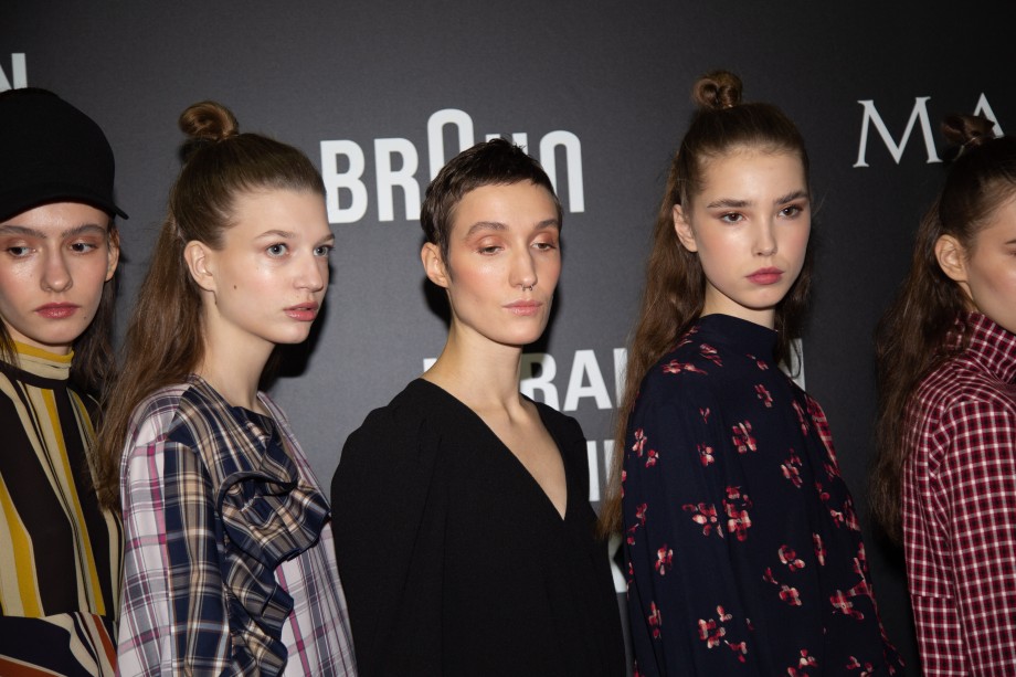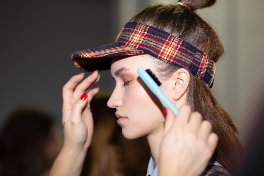 Также на показе мы заметили два главных beauty-тренда 2019 года — сияющую кожу без явного скульптурирования и размашистые брови, слегка уложенные гелем. В целом, мейкап был не ярким и идеально дополнил образы моделей.