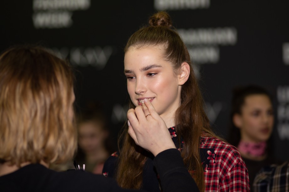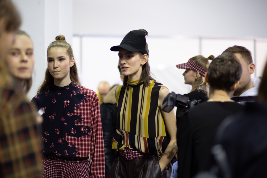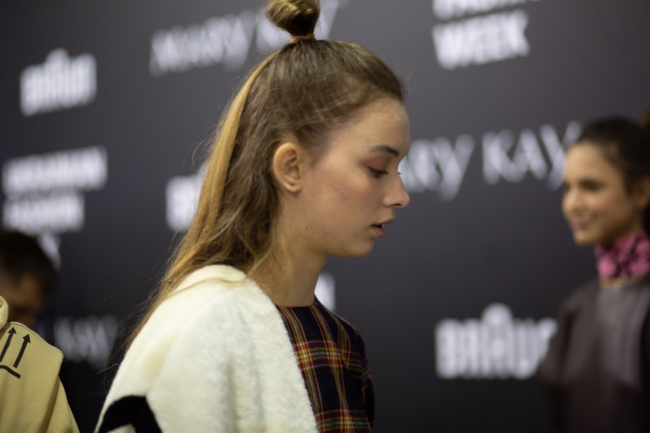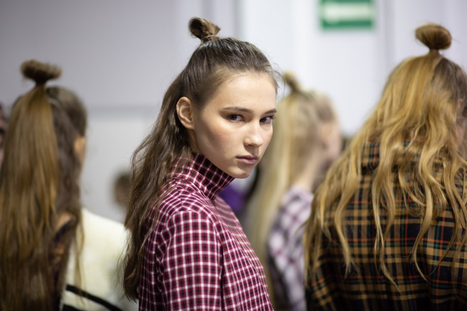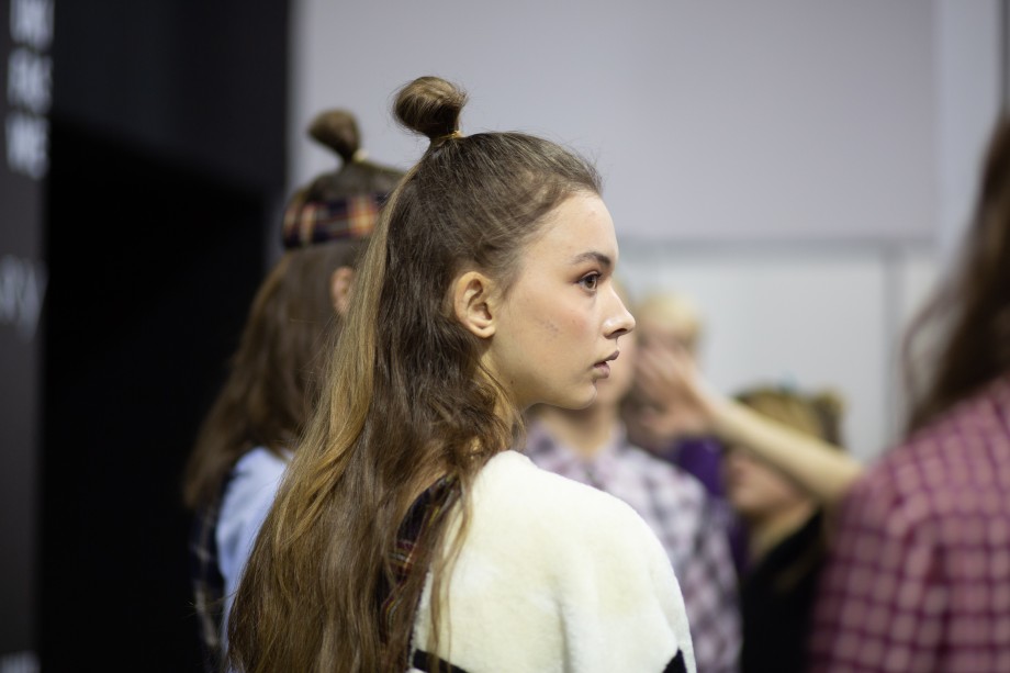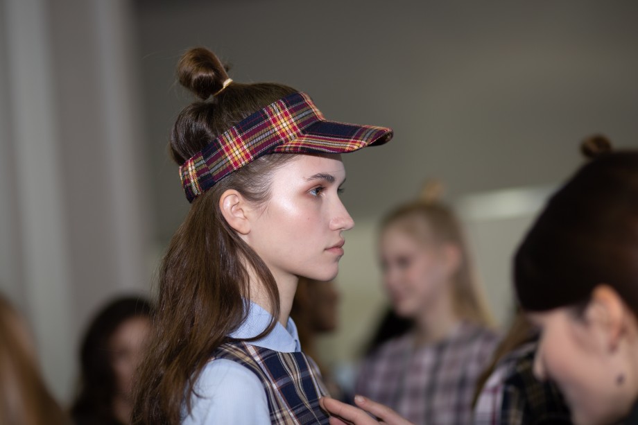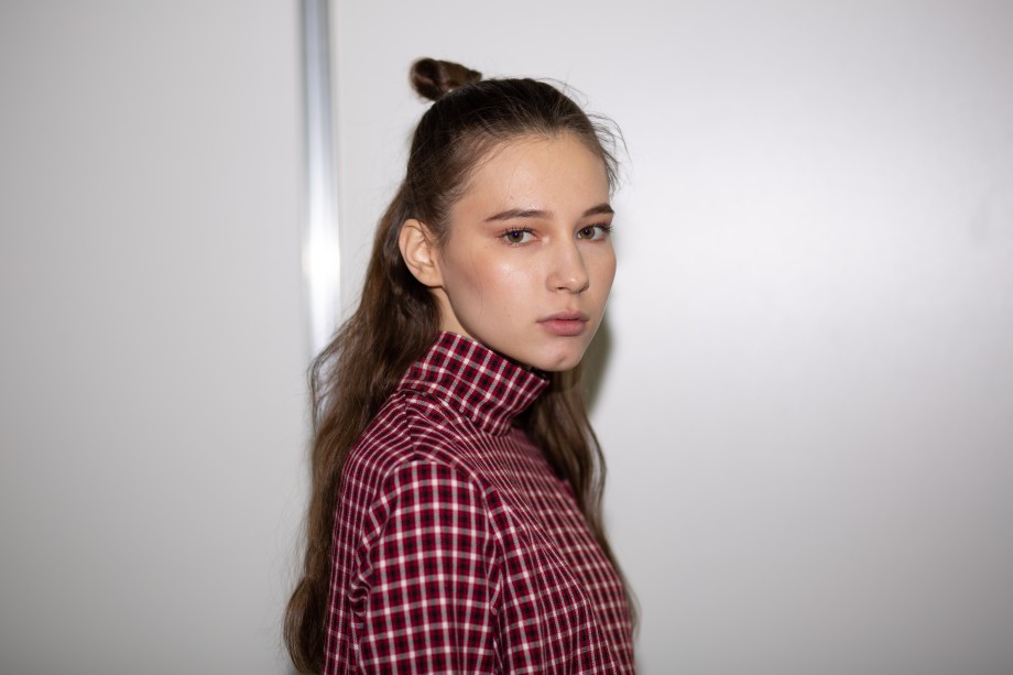 Также на показе мы заметили два главных beauty-тренда 2019 года — сияющую кожу без явного скульптурирования и размашистые брови, слегка уложенные гелем. В целом, мейкап был не ярким и идеально дополнил образы моделей.