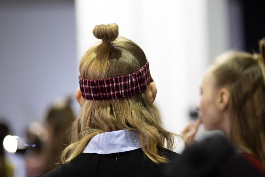 Прически были простыми и стильными – полураспущенные пучки-«Мальвинки» гармонично сочетались с головными уборами, которые мы видели на показе.