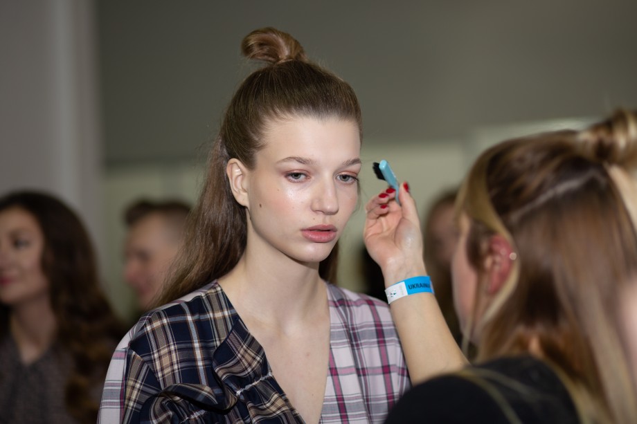 Визажем и прическами на показе занималась команда специалистов во главе с украинским мейкап-артистом и стилистом по волосам Katiemakeuper. Мейкап-команда сделала главным акцентом образов глаза, выбрав для их макияжа традиционные для осеннего периода цвета — медный и лиловый, которые также повторялись и в одежде, и в аксессуарах. Глаза моделей были покрыты легкой дымкой медного оттенка, в то время как губы были подчеркнуты лишь блеском нежно-лилового цвета. Макияж дополнили главным beauty-трендом 2019 года — «мыльными бровями».