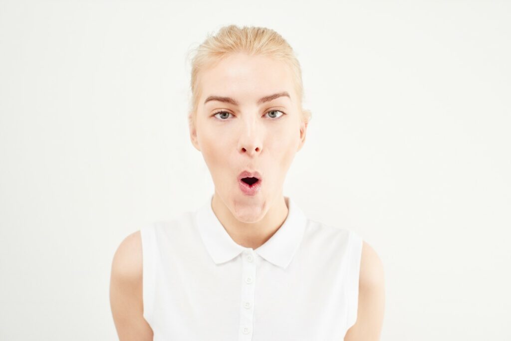 - По очереди втягивайте и надувайте щеки вначале по одной, а затем одновременно. Можно делать втягивание-надувание щек одновременно.