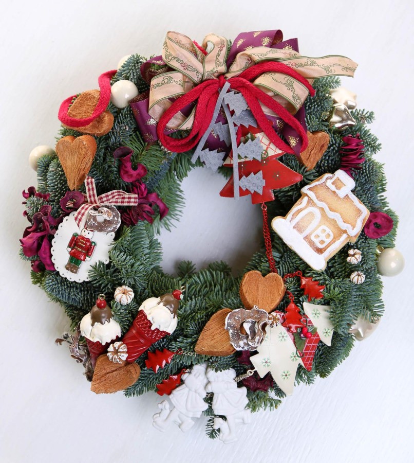 Конечно же, не только дети Вихерна мучили взрослых таким вопросам, поэтому традиция делать рождественские венки быстро прижилась по всей Европе. Изначально такие веночки были со свечами, как настольные композиции. Со временем появились и круглые композиции из хвои и цветов, уже без свечей, которые стали вешать на окна и двери. Поэтому я обычно говорю нашим клиентам, что рождественских венков в доме должно быть минимум два. Один, настольный, со свечами можно поставить на кухне и добавлять с детьми крупные свечи туда, отсчитывая время до Рождества. А второй повесить на дверь или стену в кабинете или детской, чтобы радовал.