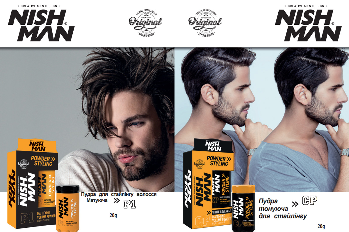Средства для создания обьема. Приподнятые волосы от корней – еще один нюанс, который придает мужчинам особый шарм. Для того чтобы обеспечить прическе длительный объем, эксперты рекомендуют использовать пудры для фиксации. Они помогают придать прическе необходимую форму. Кстати, бренд Nishman предлагает пудры с тонирующим эффектом, которые поддерживают не только объем волос, но и улучшают его оттенок и маскируют седину.
