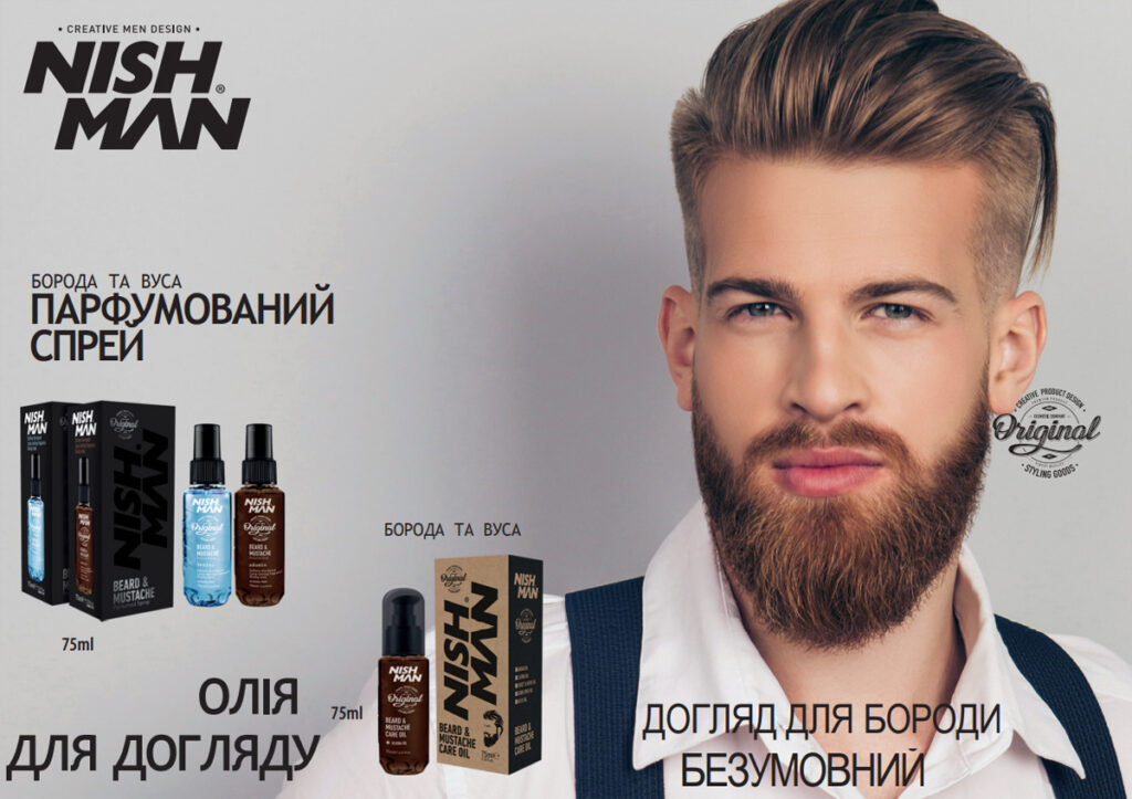 Масло для бороды. Ухоженная борода – не менее важный аспект в борьбе за безупречный внешний вид. Одним из самых простых и базовых средств для полноценного ухода за бородой является специальное масло. Идеальное средство по уходу за бородой можно найти у Nishman. Их масло для бороды и усов — питает, увлажняет и смягчает щетину на лице, а также устраняет раздражение и сухость кожи.