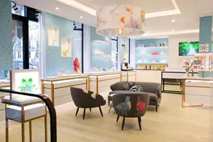 Maison Sisley наполнен предметами искусства. Упомянутые выше ручки для дверей в форме женского силуэта сделал скульптор Бронислав Кшиштоф – друг семьи и автор парфюмерных флаконов марки. Светильники тут из миланской студии Dimore и от испанского дизайнера Альвара Каталана де Окона. Последние – очень модные экологические штуки. Их по заказу испанца делают колумбийские мастерицы из пластиковых бутылок. Из знаковой мебели имеются металлические кофейные столики Lips от дизайнера Марики Карнити Боллеа и софа Jetlag от архитектора Индии Махдави. На стенах – коллажи из печатных материалов о косметике Sisley, итальянские мозаики и модернизированные обои ручной работы известного французского дизайнера интерьеров Жака-Эмиля Рульманна.