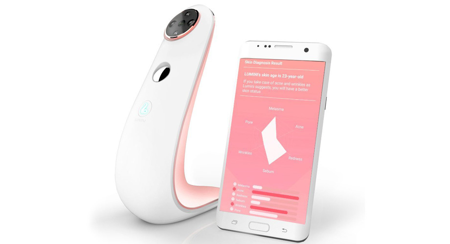Этот портативный гаджет создан для того, чтобы сделать вашу кожу чистой и сияющей. Работает он очень просто: устройство делает снимок лица, проводит анализ состояния кожи, идентифицирует угри, увеличенные поры, морщины, покраснения и сухость, после чего отправляет всю информацию на смартфон. На основе полученных данных специальное приложение Lumini определяет назревающие проблемы с кожей и дает профессиональные рекомендации от дерматологов и косметологов.