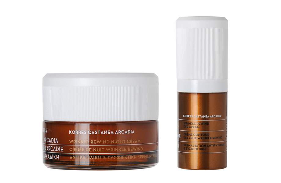 Заглавный компонент новой антивозрастной линии Castanea Arcadia греческой марки Korres – экстракт листьев конского каштана из Пелопонесса. Он нейтрализует действие свободных радикалов и выводит токсины. Инновационная молекула HALupeol проникает в глубокие слои и восстанавливает кожу. Гексапептид укрепляет и повышает эластичность. Бетаглюкан активизирует защитные функции и предотвращает фотостарение. Витамин С усиливает синтез коллагена и сокращает морщины. Экстракт черного овса увлажняет и тонизирует. В линейке представлены дневные кремы – насыщенный для сухой и очень сухой, легкий для нормальной и комбинированной кожи, а также укрепляющий ночной крем и омолаживающий крем для век.