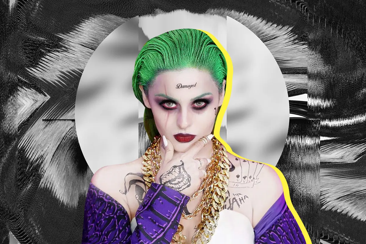 Это самый гламурный Джокер из всех киноверсий. Возможно, именно поэтому девушкам так нравится переодеваться именно в Джокера Джареда Лето на Хэллоуин. Да и образ повторить не сложно: зеленые волосы аккуратно убраны назад гелем, на лице несколько мини-тату, макияж в стиле смоки-айс и темно-красная помада. Для этого образа никакой бутафории не нужно. Только косметика.