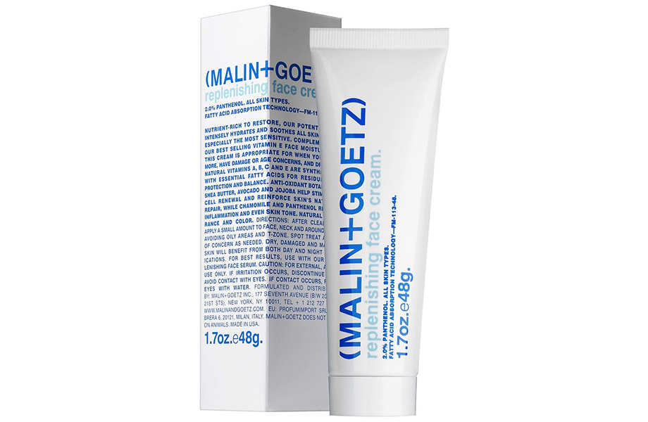 Растительные жирные кислоты, пантенол, витамины Е, А, В, С – формула восстанавливающего крема марки Malin+Goetz. Создатели рекомендуют наносить его днем людям с сухой кожей, а вечером – абсолютно всем. Replenishing Face Cream питает, увлажняет, восстанавливает и успокаивает. Для большего эффекта крем используют с сывороткой Replenishing Face Serum.