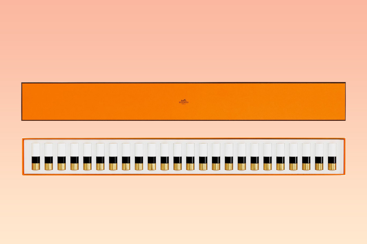 Пользуясь большой популярностью, французский бренд Hermès решил собрать воедино всю свою коллекцию экологически чистых губных помад и поместить их в бьюти-бокс под названием «24-цветное пианино». Продукция для губ Hermès поставляется в подарочной коробке, которая буквально равна длине пианино и составляет 88,3 сантиметра. Тщательно упакованная в фирменный оранжевый пакет, помимо коробки, коллекция включает в себя все фирменные оттенки, такие как Beige Naturel, Rouge Orange and Rose Lipstick.
