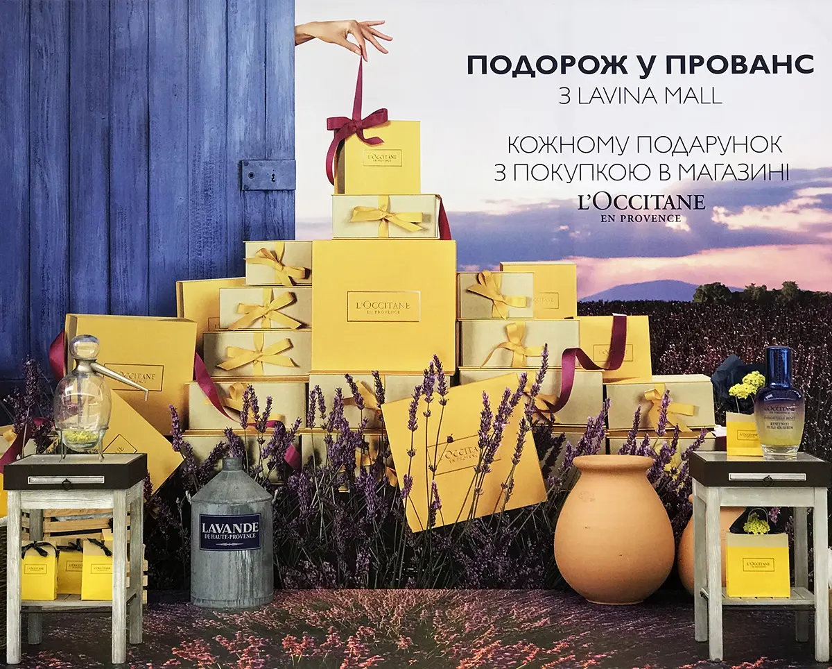 В ТРЦ Lavina Mall, у фонтанов, находится уголок, который передаст всю красоту и особенность Франции. Кроме впечатляющей атмосферы и возможности сделать невероятные фото, бренд L’Occitane дарит каждому подарок с покупкой в магазине.