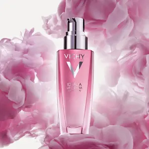 Главные компоненты Idealia – полифенолы черники, аденозин и экстракт ферментированного черного чая. Экстракт черники – мощный антиоксидант. Кроме того, эта ягода замедляет старение: ускоряет синтез коллагена и борется с металлопротеазой – ферментом, который разрушает коллаген. Аденозин защищает митохондрии – энергетические станции клеток, а также ускоряет синтез АТФ – источник энергии клеток. Экстракт черного чая блокирует процесс гликации – затвердевания коллагеновых волокон, предотвращая появление морщин. В состав сыворотки также добавили флаваноиды из цитрусовых и экстракт корня солодки, которые усиливают эффективность средства. Первые результаты обещают через восемь недель регулярного использования – это сияющий цвет лица, гладкая кожа и ощущение комфорта. Сыворотку советуют использовать вместе с дневным ВВ-кремом, ночным кремом и кремом для кожи вокруг глаз. А чтобы наполнить энергией весь организм, специалисты Vichy рекомендуют правильно питаться, пить больше жидкости, уделять полчаса в день физическим нагрузкам, регулярно делать расслабляющий и тонизирующий массажи.