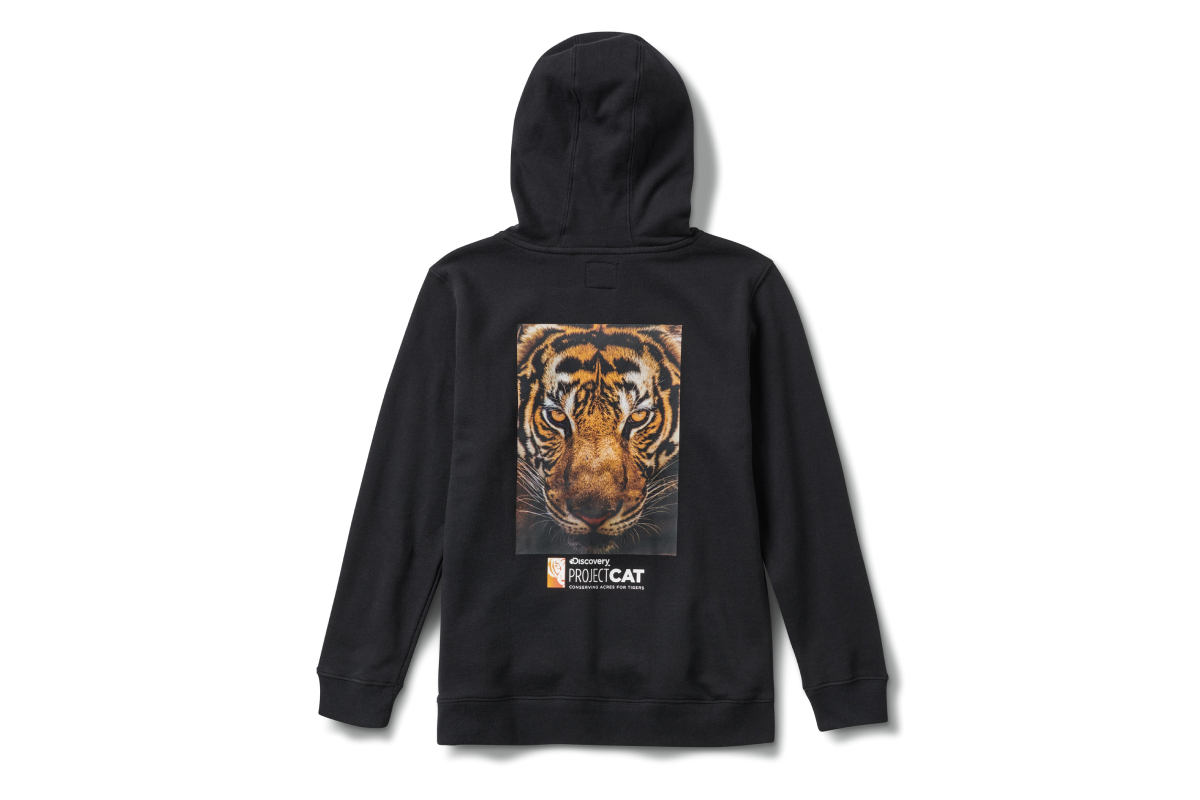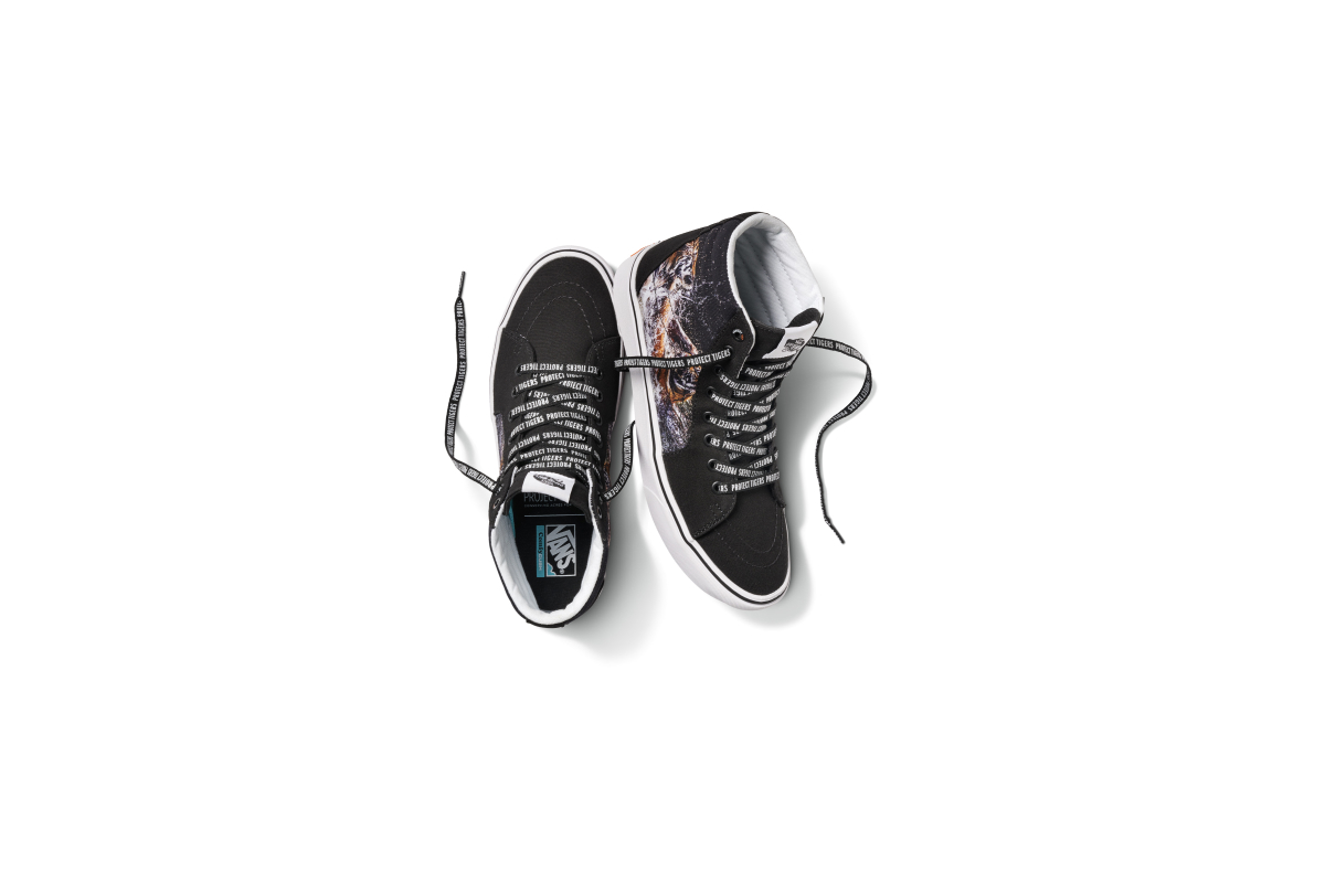 В совместную коллекцию Vans и Discovery вошли одежда и обувь для взрослых и детей – футболки и худи из переработанного хлопка, кеды и слипоны с изображениями тигров и принтом, имитирующим рисунок шкуры этих животных. Также в линейку входят детские свитера со слоганами Protect Tigers (защитить тигров).